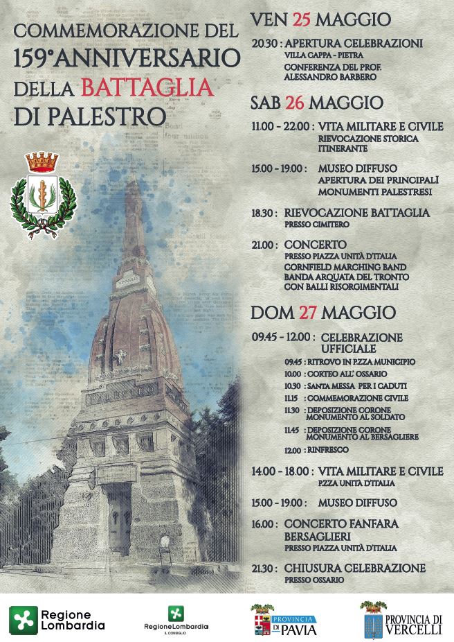 Programma della commemorazione del 159° anniversario della Battaglia di Palestro 26-27/05/2018