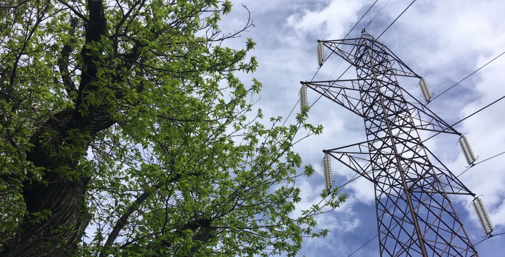 Taglio piante in prossimità di linee elettriche di alta tensione.